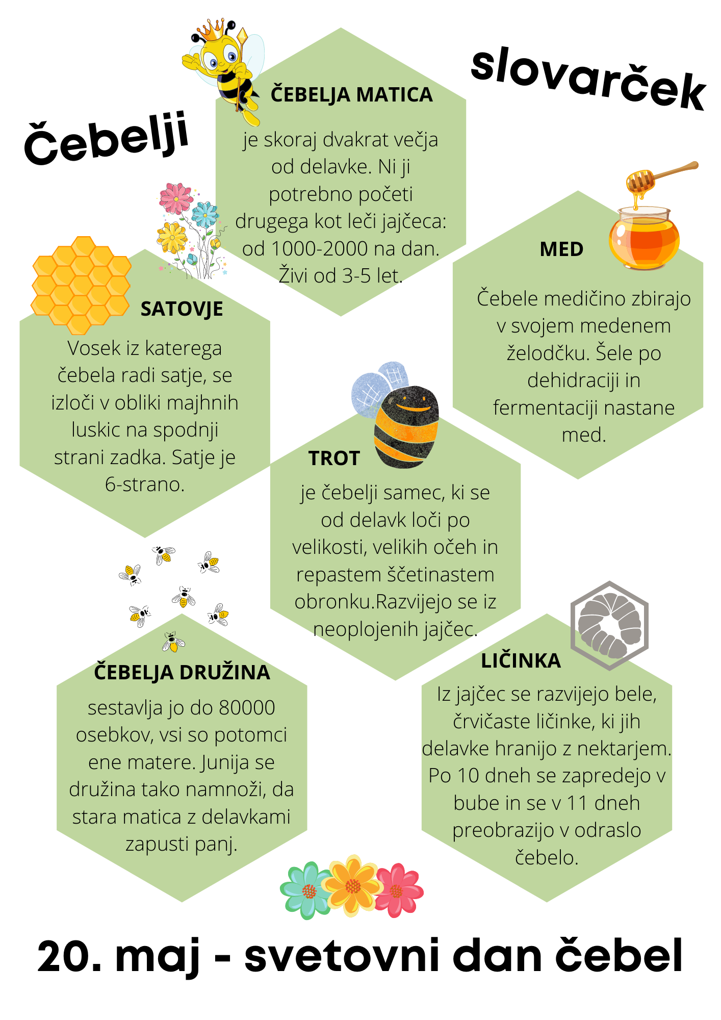 V več kot 6 letih se je nabralo kar nekaj zanimivosti o samih čebelah. Od čebeljih ugank, čebeljega slovarčka, zgibanke o čebeljem plesu … Za vašo uporabo si jih lahko prenesete spodaj.